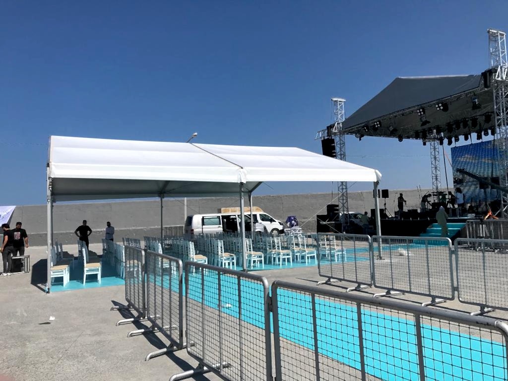 Azerbaycan'da açık hava etkinliklerinde kullanılan protokol çadırları, katılımcıları yazın güneş ışınlarından, kışın ise sert hava koşullarından korur ve organizasyonlara konfor sağlar.